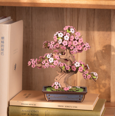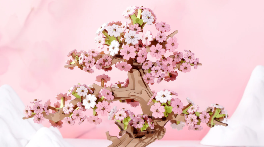 Exhibe tu propio bonsái de flor de cerezo con el Sakura Bonsai de Rolife. Un rompecabezas 3D DIY que recrea la belleza del cerezo en flor con pétalos rosados y blancos en un diseño compacto y elegante.